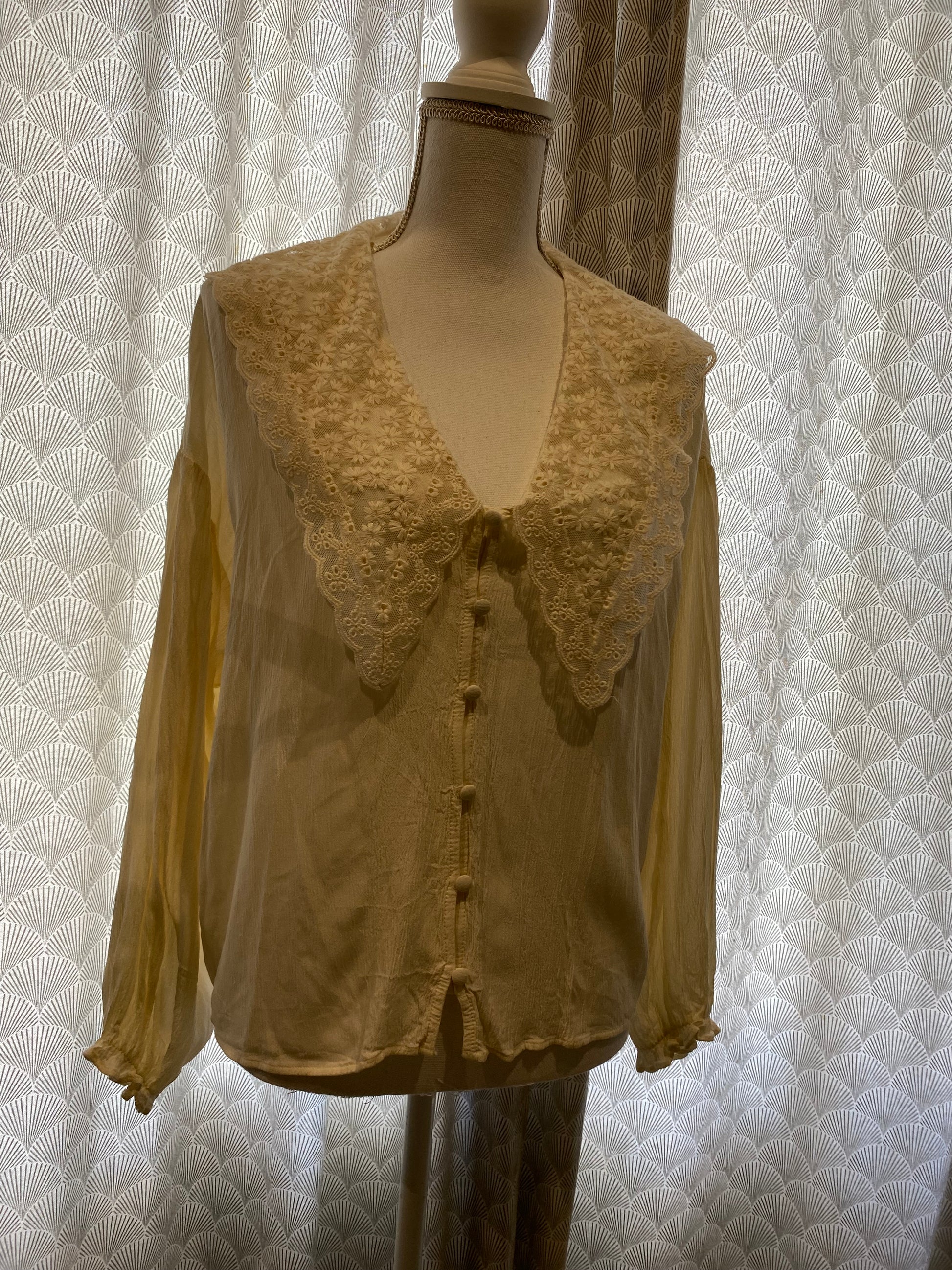 Blouse crème col dentelle – Zara – taille XL