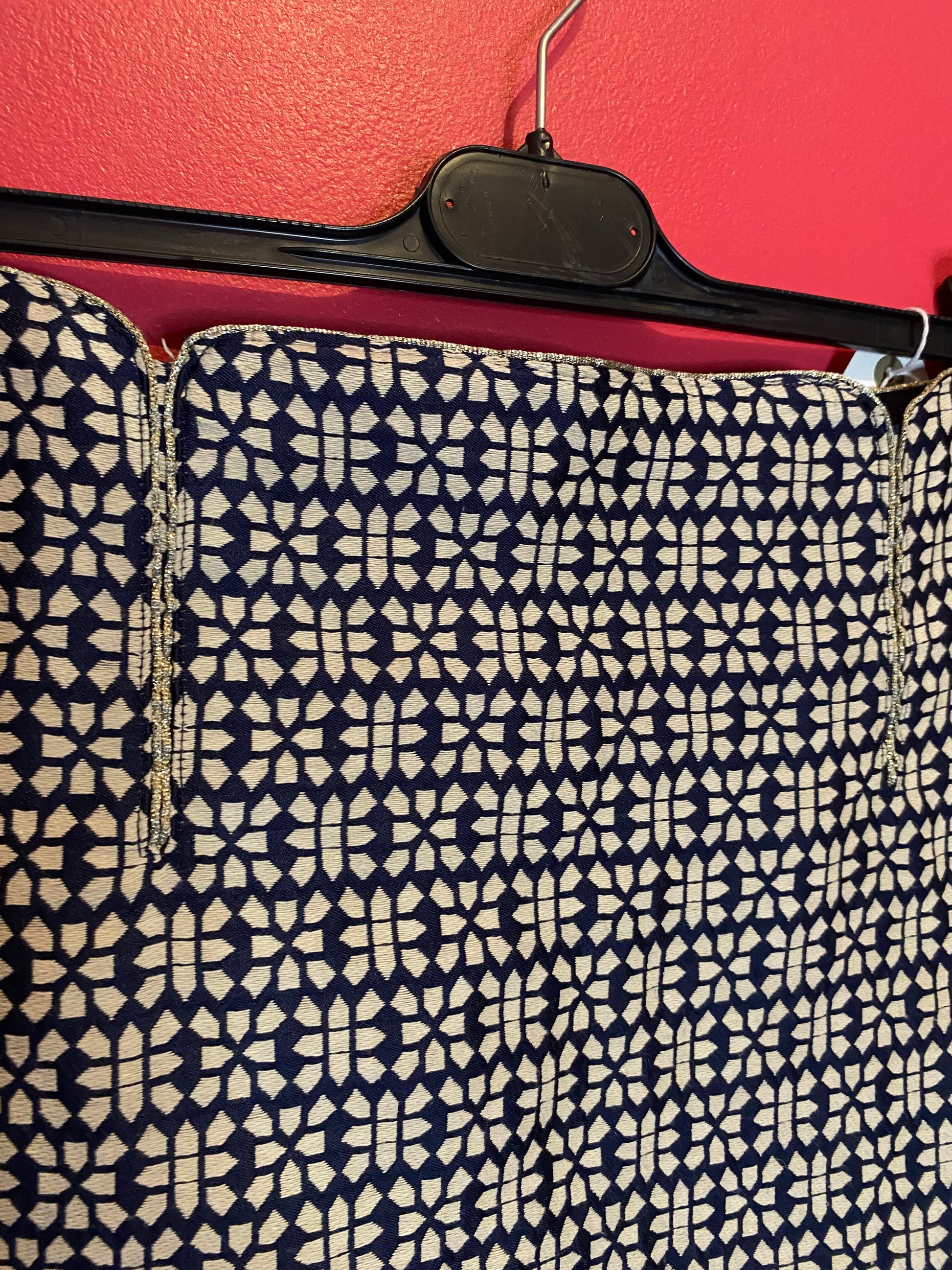 🔹 Motif : Géométrique bleu marine & écru, inspiration rétro