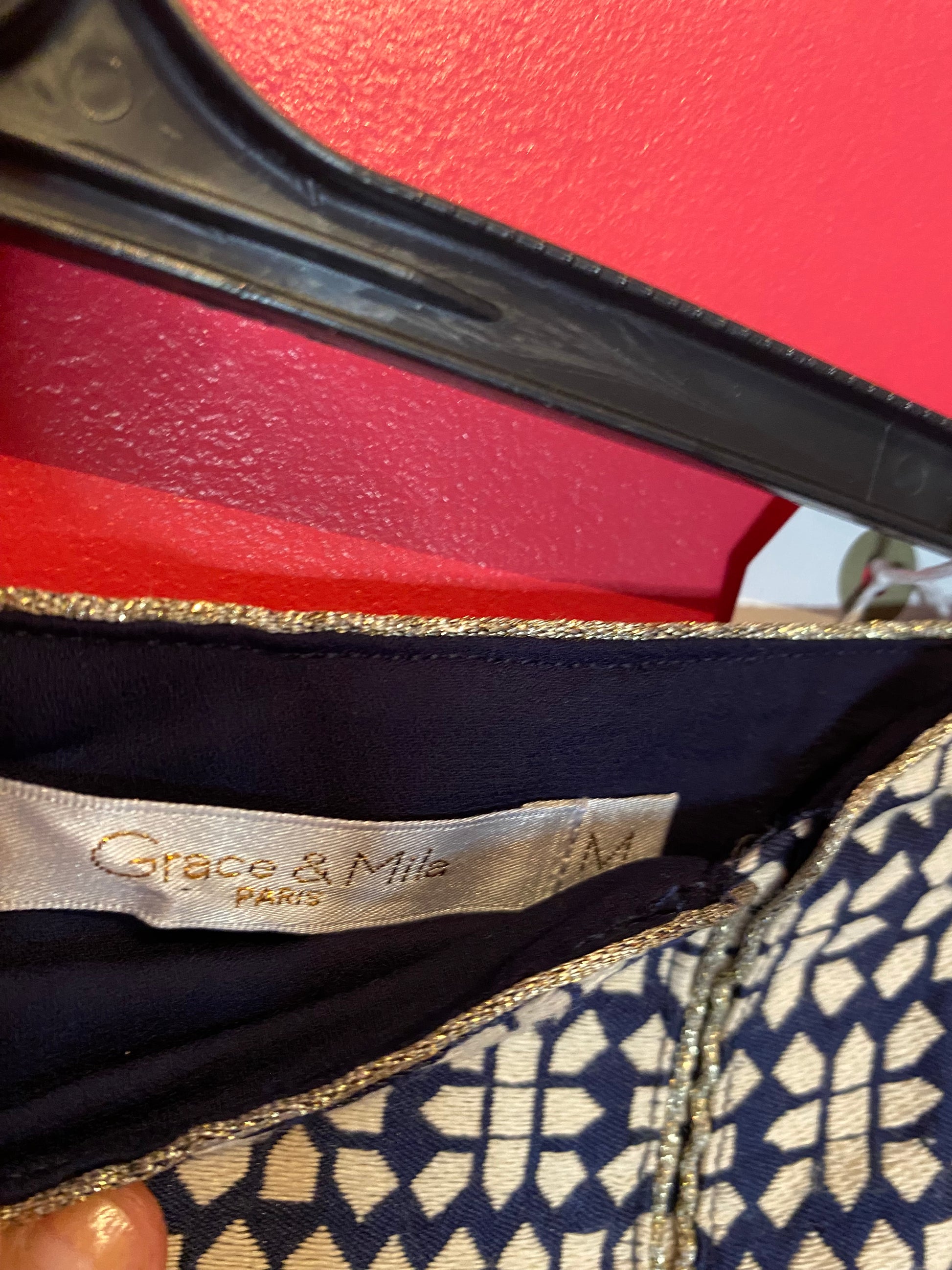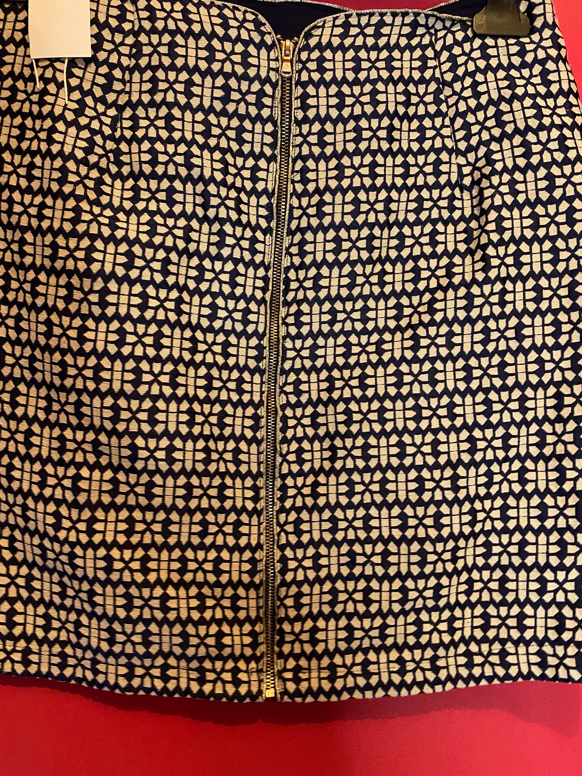 Mini-jupe chic Grain de Malice - Motif géométrique rétro, comme neuve